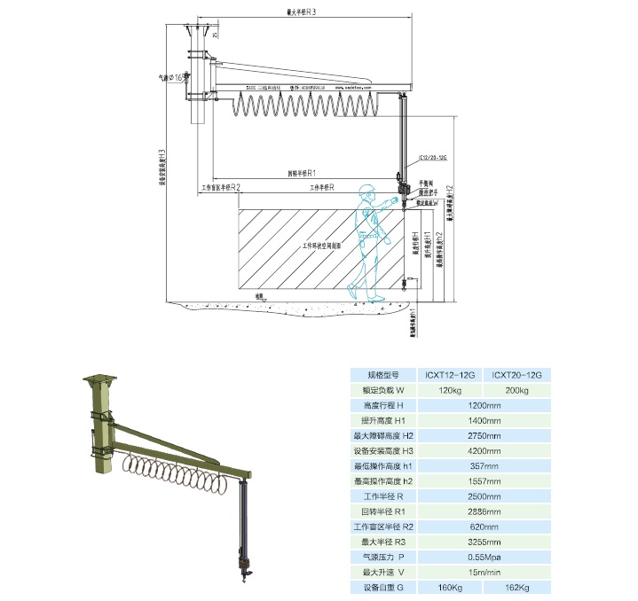 ICXT20-12G,吊顶式安装,负载200KG,用户可根据现场实际情况,自行设计制造辅助吊架,配合SADE的 I 型主机,完成各种工况的搬运。详细资料可向就近办事处工程师索取。